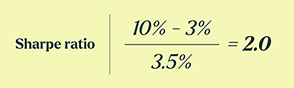 Deviding the Excess Return of 7% by the Standard Deviation of 3.5%, givus us a Sharpe Ratio of 2.0.
